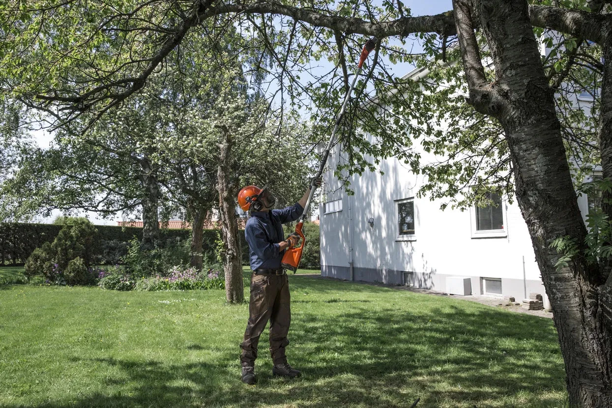 Husqvarna 120iTK4 battery pole saw combines petrol performance with zero direct emission and quiet operation. 120iTK4 is a Telescopic pole product, which means that you can combine the “body” of the machine with either a pole saw or a hedge attachment. This makes it a versatile and convenient tool for several operations depending on the task at hand. Equipped with a telescopic tube with up to 4m reach and split shaft for easy transportation.