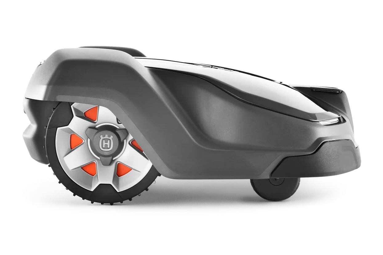 Wheel motors with 2 step gearboxes, a new technology that enables ultra-silent drive. Gives an outstanding performance in perceived noise level and enables night time operation or 24/7 mowing in all kind of neighborhoods.