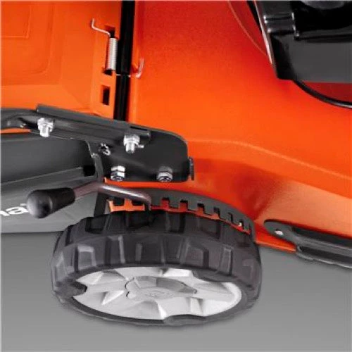 Robust design – Heavy duty cutting deck with steel cutting height segment. U shaped lower handle support and dual ball bearing wheels secured by locking nuts ensures durability in even the toughest conditions