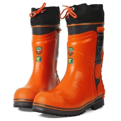 Husqvarna Protective Rubber Boots with Saw Protection – Functional 24. Handmade boots with approved saw protection. Extra reinforced upper part with toe-cap and reinforcement around the sole. A new heel cap make it easier to put on and take off the boot. Cotton lining. Sole can be fitted with studs.