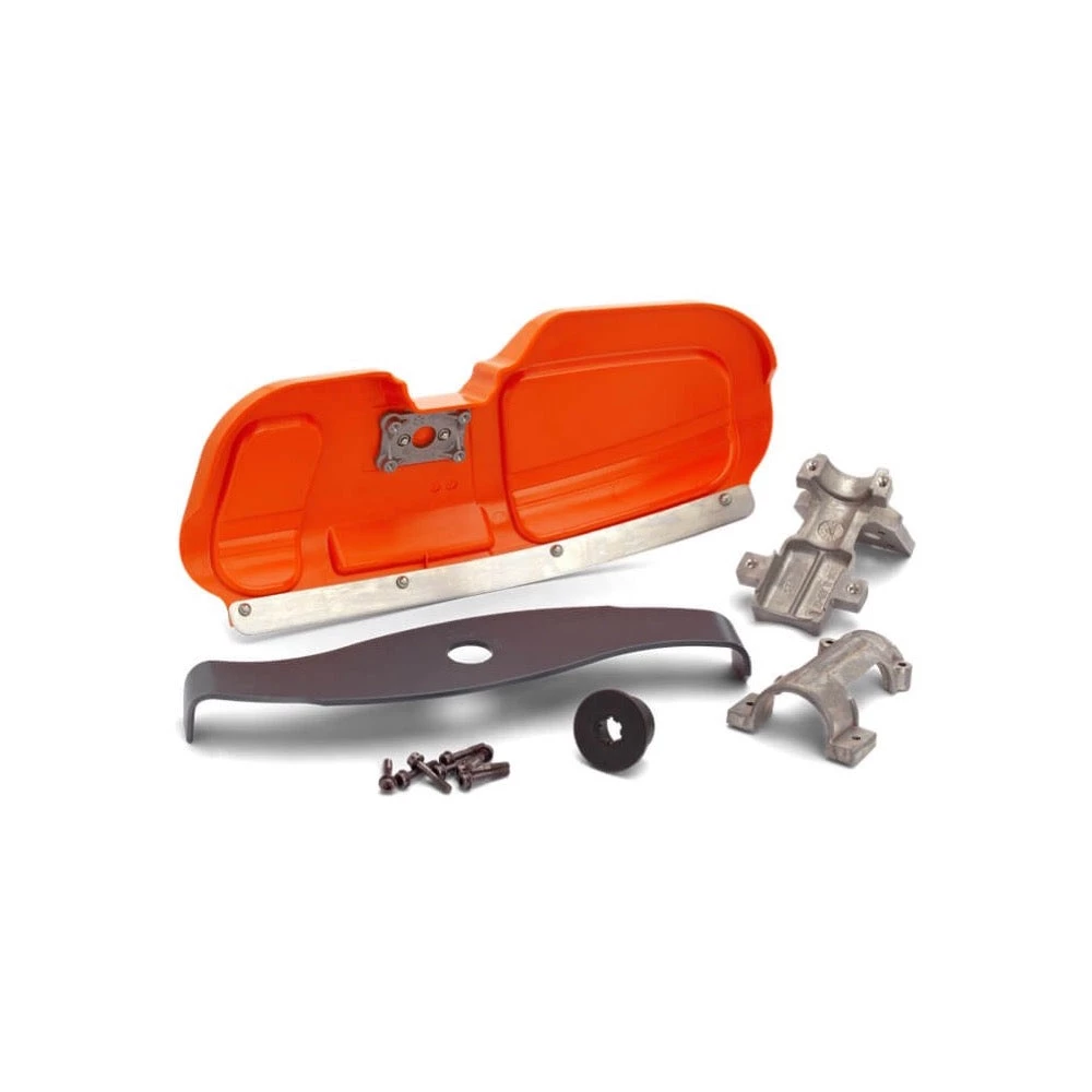 Simplifies effective cutting and shredding of dense, tough grass and weed. Contains shredder blade, guard, holder, bracket, support flange and bolts.