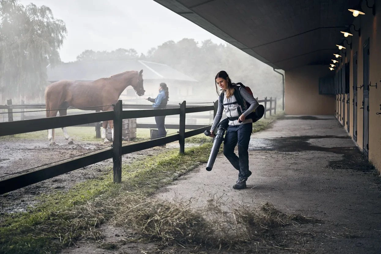 Husqvarna 340iBT Backpack Battery Blower – Experience outdoor cleaning work with impressively low levels of noise and vibrations with this powerful and well-balanced backpack battery blower. The blower provides an impressive blow force of 17N and features an intuitive user interface as well as two slots for BLi batteries with auto-switch that keeps you going until the work is done.