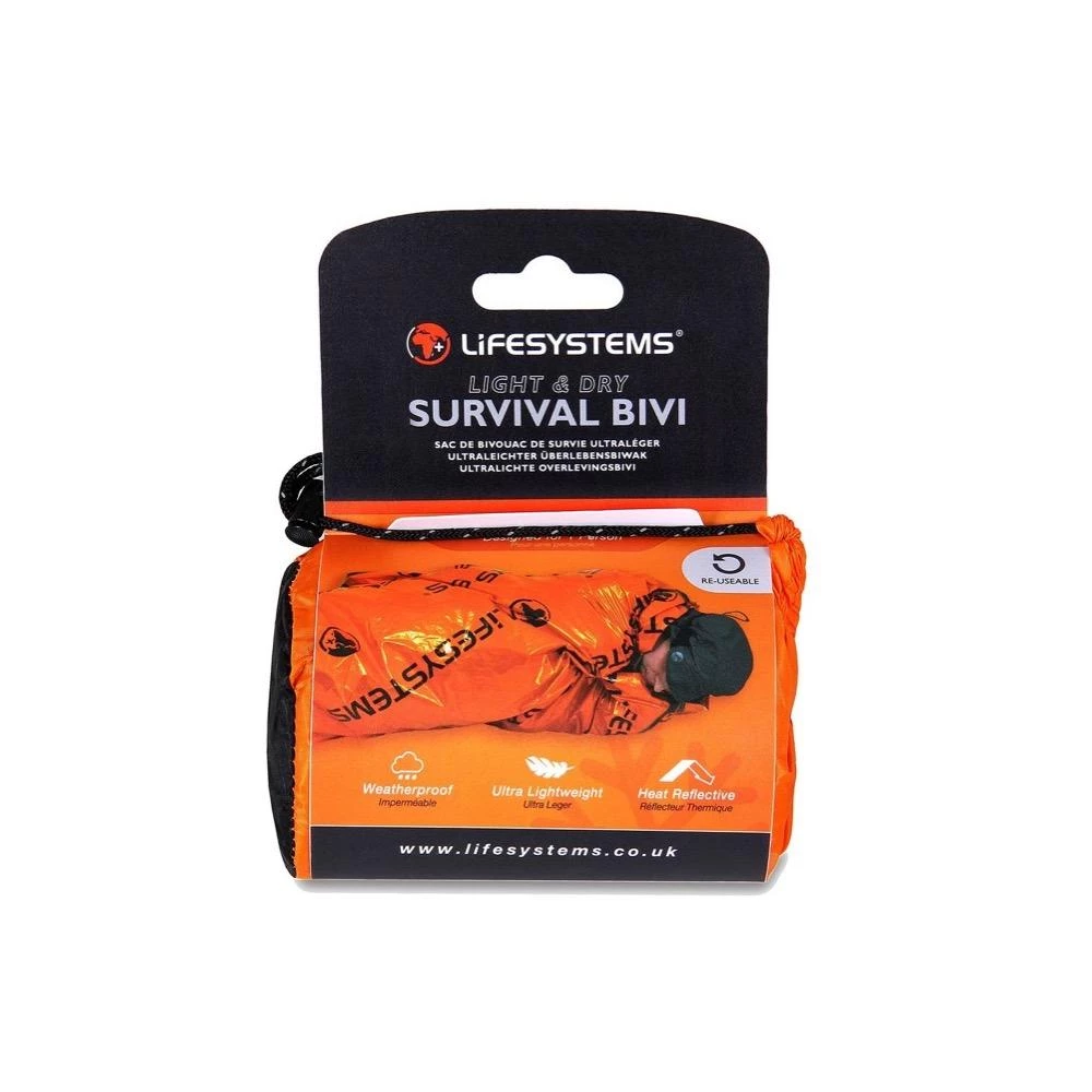LS Light and Dry Bivi Bag. Perfect for tough situations where you require total body coverage, the LS Light and Dry Bivi Bag is a lifesaver during times that call for retaining body heat. This thermal Bivi Bag is reusable, strong, and lightweight, as it is made of metallic PE material and is finished with taped seams. Ideal for arborists, field workers in extreme outdoor climates, endurance racers, or general outdoor enthusiasts alike, the LS Light and Dry Bag is equipped with its own compact cover sack for quick and easy storing. Feel secure with the Bivi Bag as it is waterproof, windproof, and most importantly, reflects and retains over 90% of radiated body heat. Feel safe as it is radar reflective, making location identification easier by emergency services when you most need help.