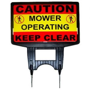 The Mower Operating Ground Sign helps promote site safety … stick these in the ground anywhere around your job site.