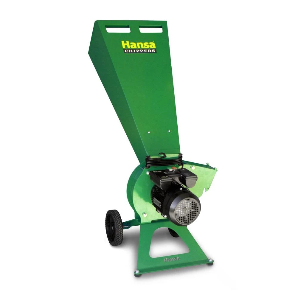 Specifications: Chipping Capacity: 30mm branches Dimensions: Height 105cm, Width 50cm, Length 90cm Weight: 55kg Electric Engine: 2hp Single phase electric motor Knife: 110mm x 40mm x 6mm A8 modified tool steel. Anvil: Hardened, reversible, sharpenable Disc Speed: 2820RPM Disc Size: 260mm x 6mm Infeed throat opening: 11cm x 13cm Tyres: 200mm Solid Finish: Powder Coated Warranty: On product registration, warranty increases to four years on Honda engine, two years on chipper. Hansa Chippers are Australian made chippers designed to fill the gap between smaller domestic garden shredders and the large commercial chippers.