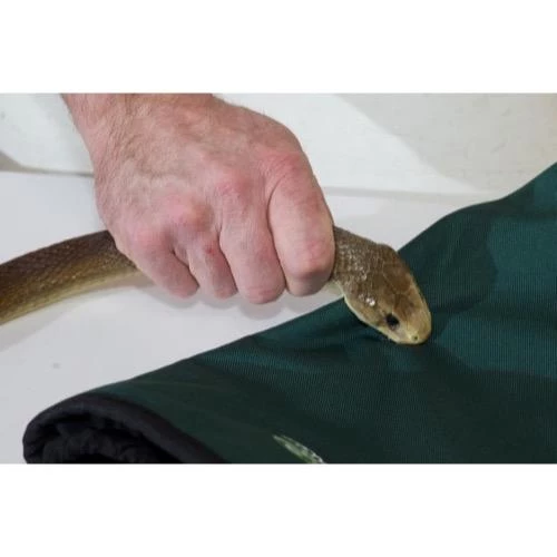 The Chew Test: Five of the most common venomous Australian snakes were put in the vicinity of Snakeprotex™ and encouraged to bite the fabric which was fitted to a realistically sized dummy leg. The snakes used were: Eastern Brown Snake, Mulga Snake, Tiger Snake, Red-bellied Black Snake, and Southern Death Adder. None of the bites resulted in venom penetration through the garment. To quote from the test report provided by the herpetologist; “In all cases when a snake bit the gaiter on the model leg or bit the gaiter separately, no venom was detected on the inside of the gaiter, even when examined under magnification.” More recent tests on the newer model used a much more difficult test to pass: a Taipan while being held by a person bit the garment. This is a much tougher test firstly because the Taipan has the longest fangs of any Australian snake. The snake was allowed to remain latched onto the garment for 30 seconds while its venom glands pumped continuously. This prolonged bite is referred to as a ‘chew’. It must be stressed that a bite of this nature is extremely unlikely in a real life attack: most snake bites are simply a short, sharp, open-mouthed ‘tap’. Large amounts of venom were visible on the surface after the bite but again, there was no venom penetration through to the inside of the garment. This product was designed for protection from Australian snakes and rigorously tested for performance. Alongside this critical need, the garment had to be tough enough to withstand the harsh Australian environment. The Snakeprotex gaiters must be worn over suitable trousers and boots and definitely should not be worn with low cut shoes. The new Extreme model sports a range of fully adjustable features such as adjustable boot straps allowing for a better fit amongst a larger range of different boots and shoes, and adjustable top leg straps allowing for a firmer, closer, and safer fit, SnakeProtex Extreme are now more versatile than ever. A new press tab installed to clip over the zipper provides better security stopping the zip from moving whilst walking, working or out having fun; with its water repellent tendencies and now made from a higher denier external black fabric, SnakeProtex Extreme gaiters now offer you even better protection from snake strikes while looking like every day workwear and lasting the distance. We cannot claim that the product is “snake-proof”. There are too many variables involved for us to claim this. Nor can we guarantee that a snake may not strike the body above the top of the garment, although it would be unlikely from most Australian snakes. It should be noted that even when wearing this product, common sense should still apply and the wearer should still avoid contact with any venomous species. Snakeprotex is designed to prevent a snake’s fangs penetrating through to the skin. Extensive testing has shown that large specimens held in captivity were not able to penetrate this protection. On this basis, and with the support of a very experienced herpetologist, we are proud to release this unique outdoor safety product on the Australian market. Photos and images used in this document may show slight variations in the product. This is a result of the rigorous testing and alterations which followed. We like to ensure that we supply the best protection available and the in-field success of this product will be constantly monitored. We will never release a product which has not passed the ‘chew test’ tested as mentioned earlier. Testings were conducted by Adelaide Hills Snake Catchers, Geoff Coombe (Herpetologist) & Venom Supplies Australia.