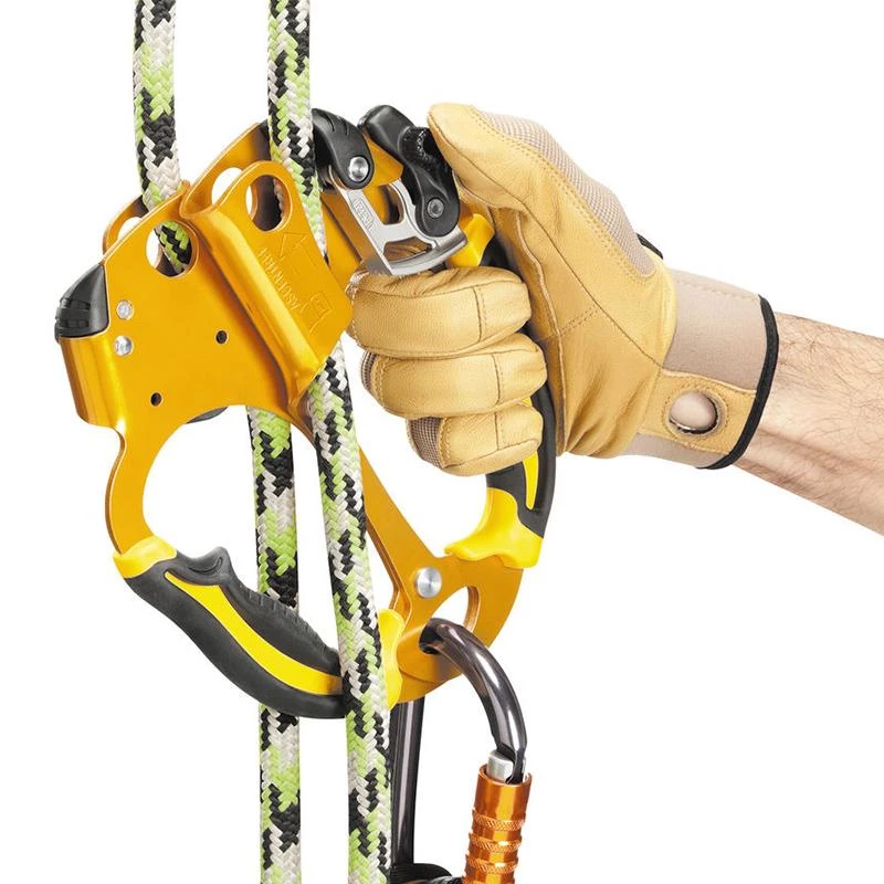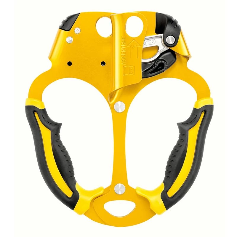 Petzl Ascentree. Handled rope clamp designed for doubled rope ascents, the Ascentree has ergonomic handles allowing a comfortable and powerful grip when pulling. Catch/cam unit is totally integrated to prevent any voluntary snagging.