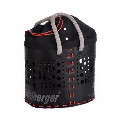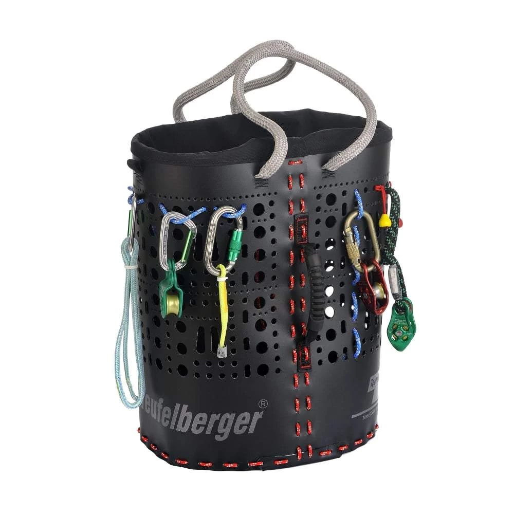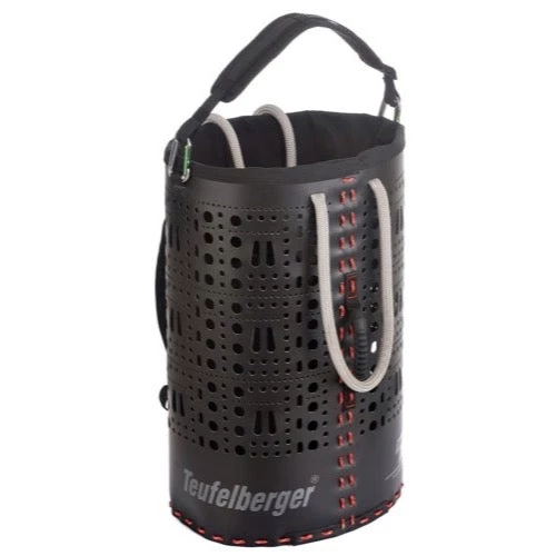 Teufelberger rope BUCKET/kit BAG. Made of the same material as the Teufelberger treeMOTION harnesses, the TEUFELBERGER rope BUCKET/kitBAG are novel storage and transport bags that are extremely robust. Users are able to arrange their equipment according to their own preferences—this can be systematically done with the ropeBUCKET/kitBAG’s convenient system of perforations. In terms of storage, these bags take up very little space as they can be stacked conveniently inside one another.